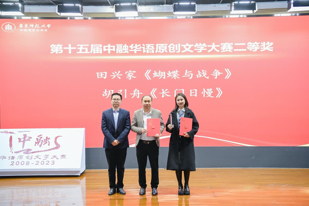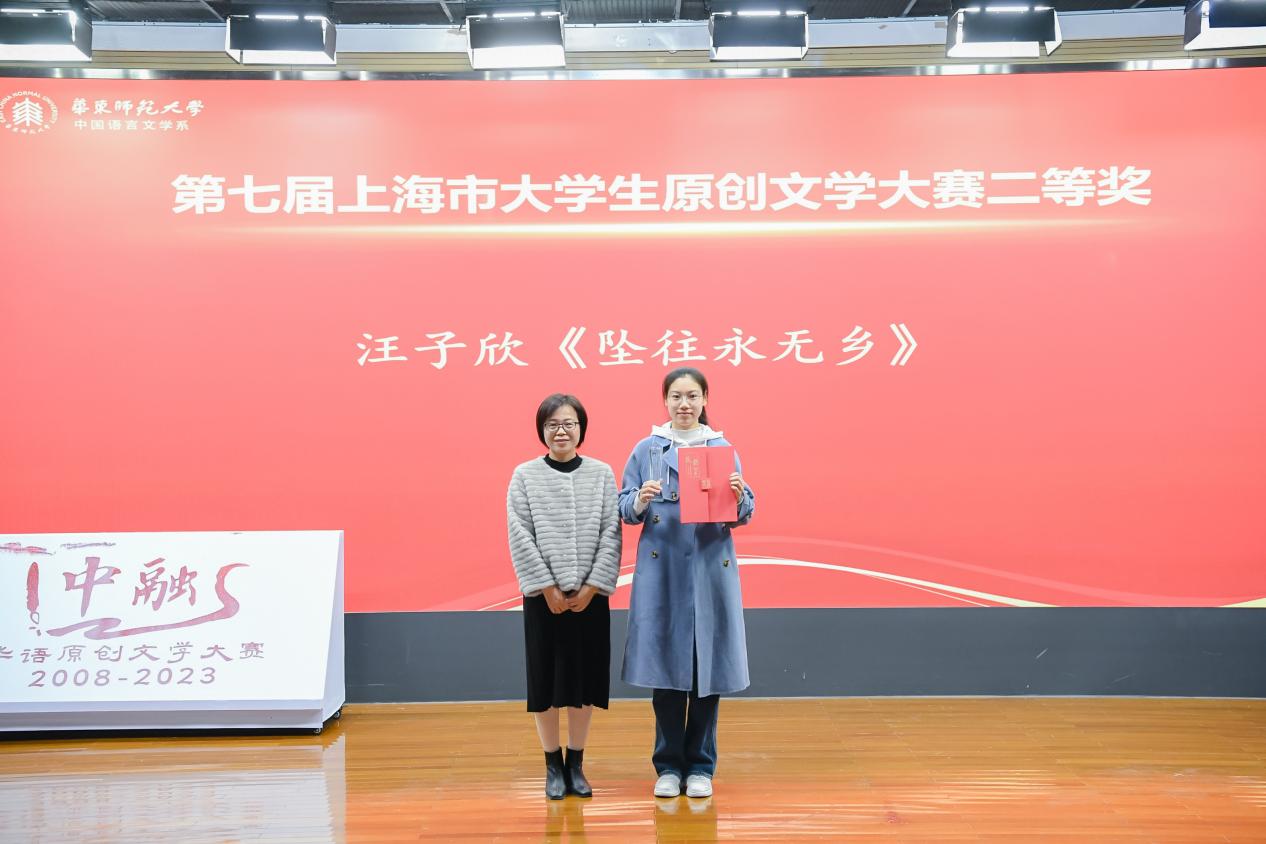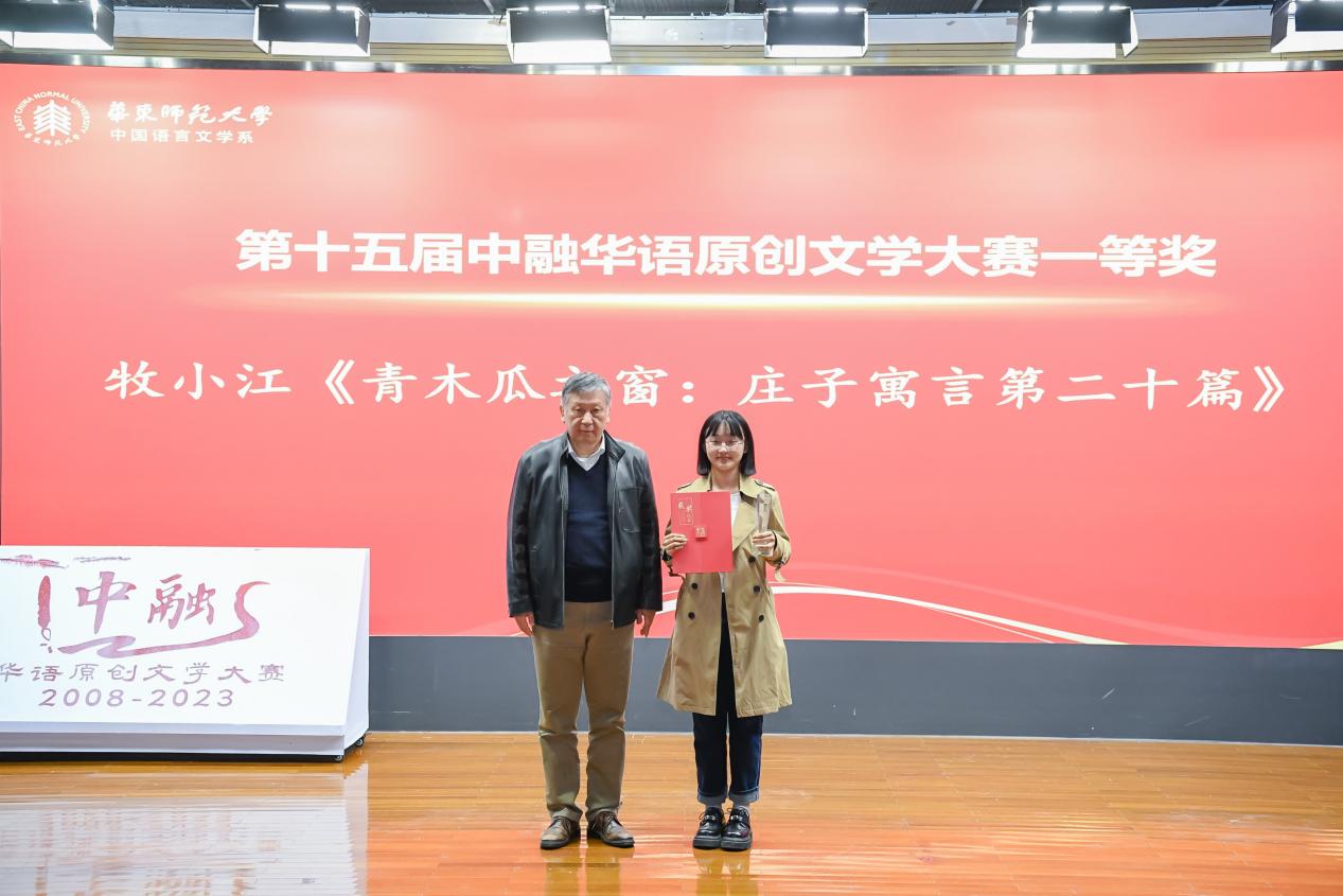 中融华语原创文学大赛及上海市大学生原创文学大赛在举办过程中,致力于让更多文学爱好者在华东师范大学这片充满着诗意与梦想的沃土上切磋交流,放飞文情与逸思。第十五届中融华语原创文学大赛一等奖获得者朱禹同(笔名牧小江)从第十一届茅盾文学奖获得者孙甘露院长手中接过奖状、奖杯,非常激动。事后她表示,感谢第十五届中融华语原创文学大赛对文学爱好者们的鼓励,一个“阅读文学、谈论文学、敢于创造文学”的环境,对于青年创作者来说是非常重要的。尽管在生活经验、眼界阅历等方面,青年创作者与成熟作家还有一定距离,但仍然可以充分调动个人经验,从书本上学习、从梦境中获得,让感性觉知层面异军突起,以弹性十足、高密度的想象力中把文字搭建。
