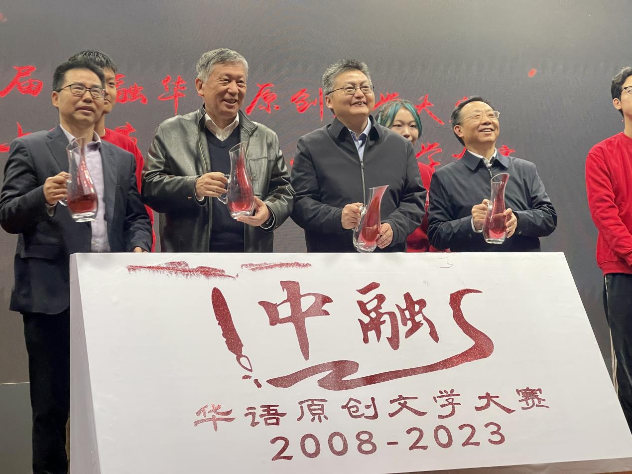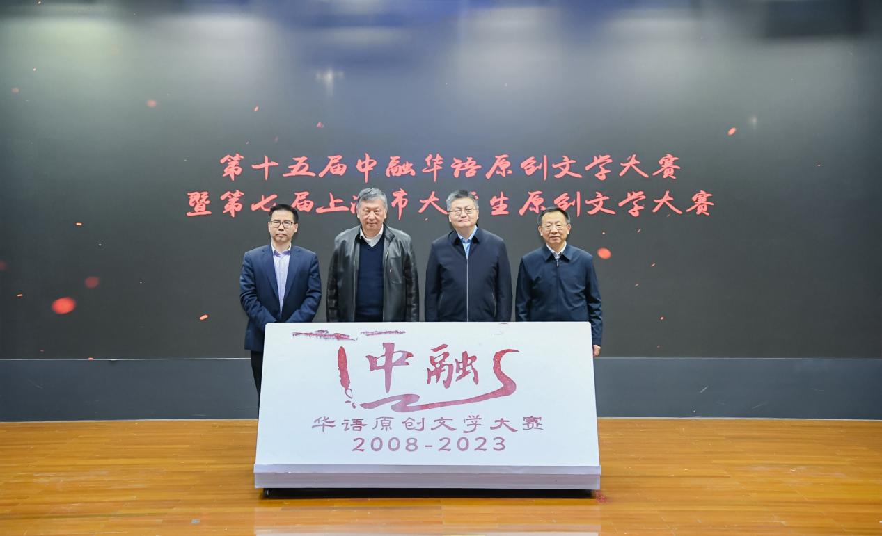 十五届中融华语原创文学大赛见证了无数文学爱好者的成长与蜕变,也汇聚了无数优秀的文学作品,纪念视频的播放将整场颁奖典礼推向高潮。上海市作家协会党组书记马文运,上海市文联副主席、上海市作家协会专职副主席、华东师范大学中国创意写作研究院院长孙甘露,华东师范大学党委副书记曹友谊,完美体育-完美体育app-完美体育365 系主任文贵良上台共同发布中融华语原创文学大赛十五周年纪念logo。