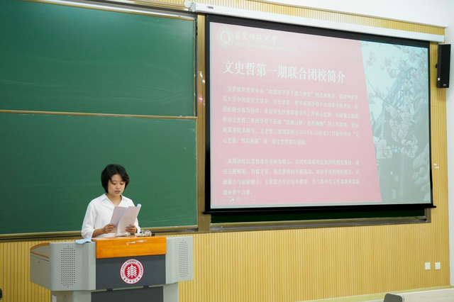 2025年10月22日下午,完美体育-完美体育app-完美体育365 、历史学系、哲学系“文心史鉴,哲启新能”第一期联合团校开班仪式在闵行校区第四教学楼102教室顺利举行。仪式由中文系团委副书记曹承前主持,哲学系党委副书记贾吉丰、校团委专职干部于袁欢、中文系团委书记王钰、哲学系研究生会主席李嘉蔚出席。三院系学生骨干及本期团校全体学员共同参会。
