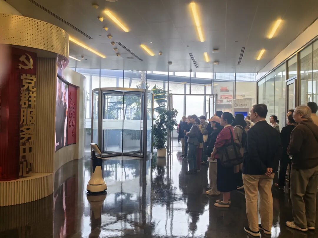 作为全国楼宇党建标杆,上海浦东陆家嘴金融城党群服务中心以“服务企业、凝聚人才、引领发展”为核心理念,不断整合优势资源,切实服务群众,凝聚发展力量,构建起“政治引领+专业服务+文化浸润”的立体化党建体系,探索出了楼宇党建的新形式、新方法,产生了许多特色成效。到22层,在讲解员引导下,党员们依次参观了该中心的政治生活厅、信息发布厅、图书阅读区域、体育健身区域、服务咨询等9个功能区的核心功能,通过数据可视化展板、互动式党建案例墙等创新形式,了解该中心的基本框架模式、日常特色活动,以及如何将党的组织优势转化为区域发展效能。