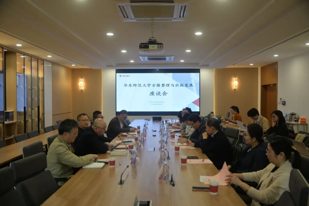 2026年4月15日下午,华东师范大学古籍整理与出版发展座谈会在闵行校区人文楼4330景山堂举行。座谈会由中文系副系主任、古籍所所长刘成国教授主持,华东师范大学党委常委、副校长雷启立教授,国际儒学联合会副会长李岩先生,古籍所校友、韬奋基金会副理事长阚宁辉先生,中文系主任罗岗教授,中文系党委书记徐默凡教授出席会议,古籍研究所部分教师参与座谈。会议围绕古籍所的发展现状、瓶颈突破及未来规划展开深入交流。
