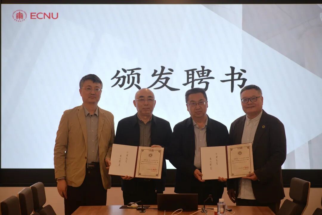 系主任罗岗教授、系党委书记徐默凡教授为李岩先生、阚宁辉先生颁发华东师范大学古籍整理与出版发展咨询委员会主任委员聘书。