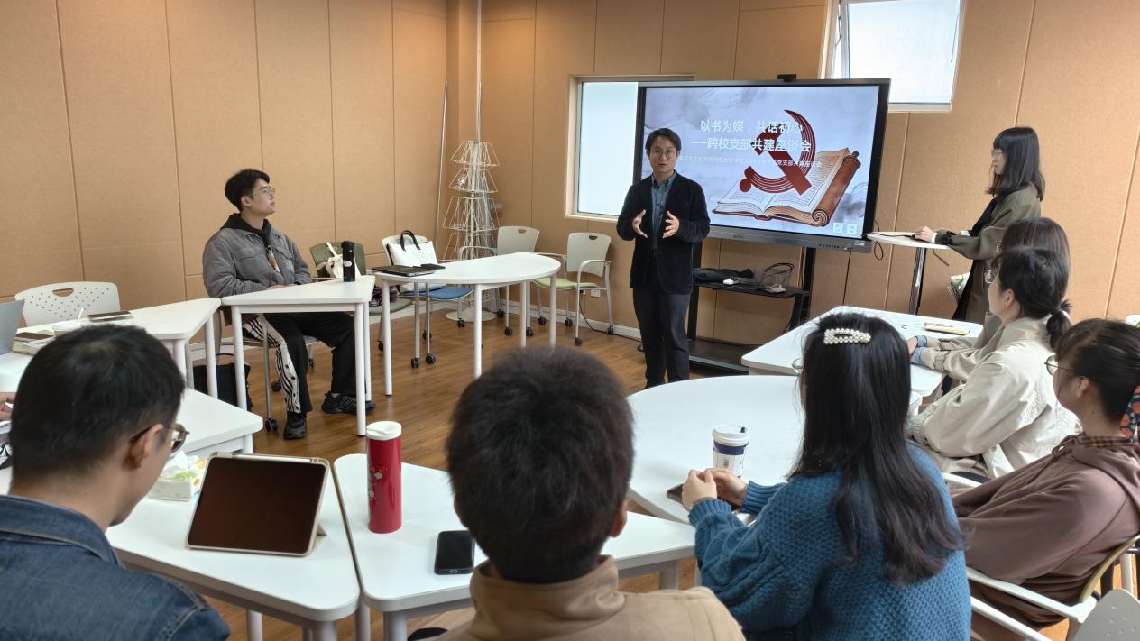 座谈会上,两支部围绕学生党建工作深入交流,分别介绍了各自党支部的特色实践。华东师大中文系2024级博士研究生党支部书记田丽媛详细阐述了支部的组织架构与特色活动;李昕颐着重介绍了支部精心打造的“世界读书日”主题品牌活动。交流中,两校博士生围绕求学经历、学术兴趣等话题深入研讨,氛围热烈融洽、思想碰撞频繁。
